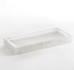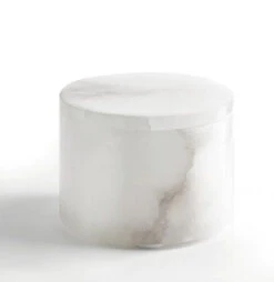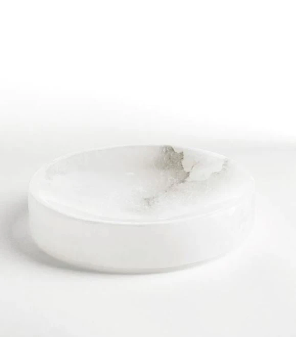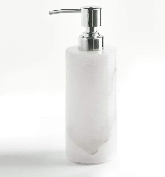 Crafted from luxuriant alabaster, the naturally marbled veining of each distinct collection piece brings artful elegance to the bathroom.