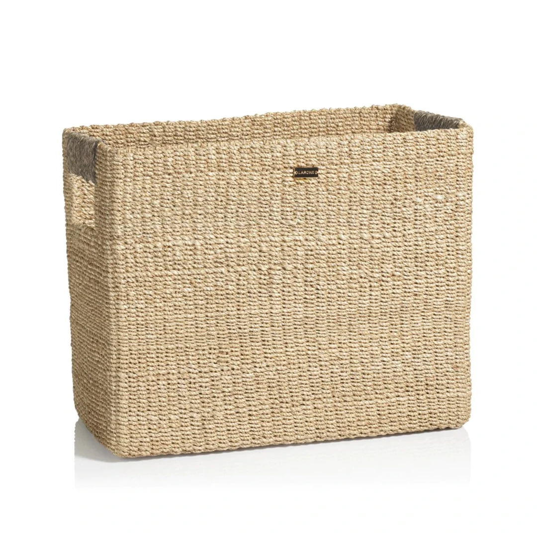Bring organization to your space while adding eye-catching appeal to your interiors with our Abaca Rectangle Magazine Basket with cut-out handles. Made from abaca leaves and featuring a rectangular silhouette, this decorative storage basket features a wicker-like construction in natural hues. Great for storing books, magazines, toys, etc., this rectangular storage basket features an open-top design with two cut-out handles for easy carrying.