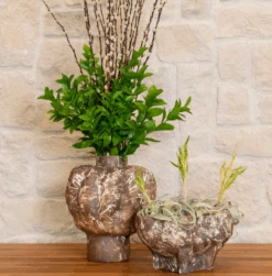 Alvarez ceramic accent vase in rich shades of brown and white. Coordinating Alvarez bowl available for a striking display.