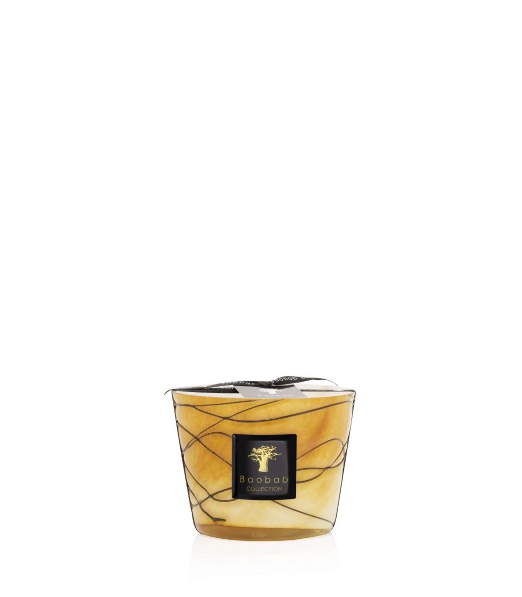 The Filo Oro scented candle is set in a golden opaline glass encased in black glass filaments. The handmade glass decoration makes each candle a unique piece as well as a true collector’s item.