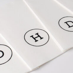 - Personalized napkin is printed with black ink for a classic modern look.