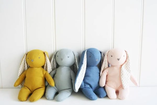 A sweet floppy bunny toy made from a beautiful linen cotton fabric. This bunny makes a lovely new baby gift and can also be used as a decor piece in a baby nursery.