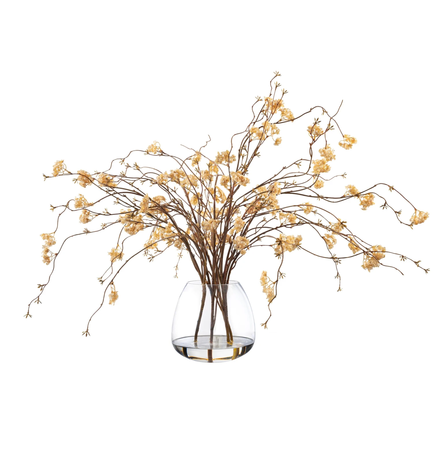 Add the perfect finishing touch to your space with this creme blossom branches faux floral arrangement.