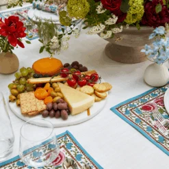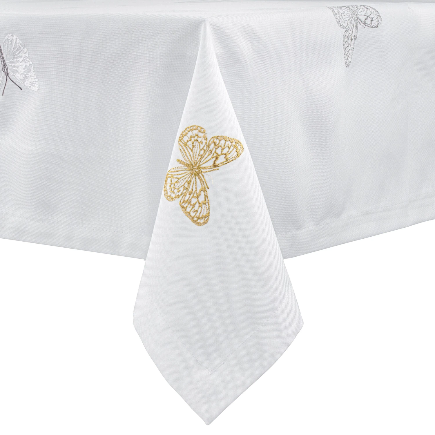 Trendy butterfly tablecloth with delicate embroidered butterflies in mixed metallic thread. Placed perfectly for an artful presentation.