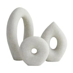 Featuring a stone-like texture, this set of sculptures recalls mid-century style with a modern play on negative space. Whether you style them together or mixed in with other pieces, they add visual interest to your home.