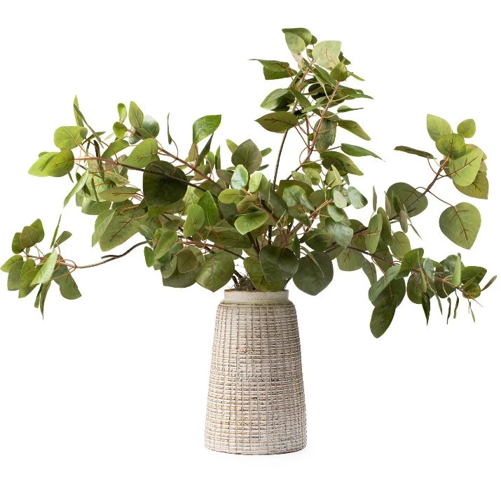 Brighten up your home decor with the Rose Bud Branches! The attractive woven vase and green branches add a natural touch of beauty to any setting.