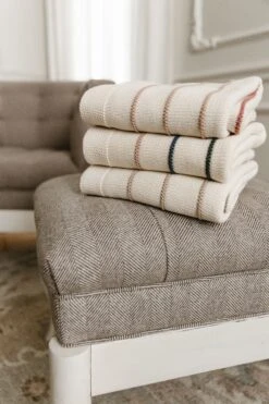 Featuring dimensional stripes in shades of neutral colors. This cozy blanket will keep your little one warm and snuggly all year.