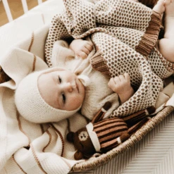 Featuring dimensional stripes in shades of pink colors. This cozy blanket will keep your little one warm and snuggly all year.