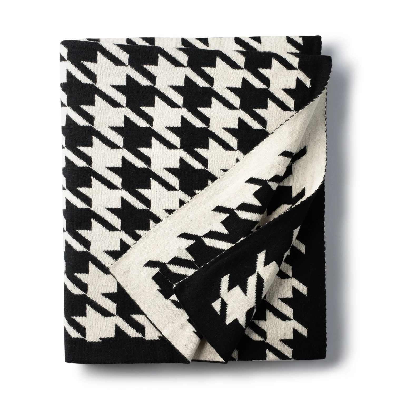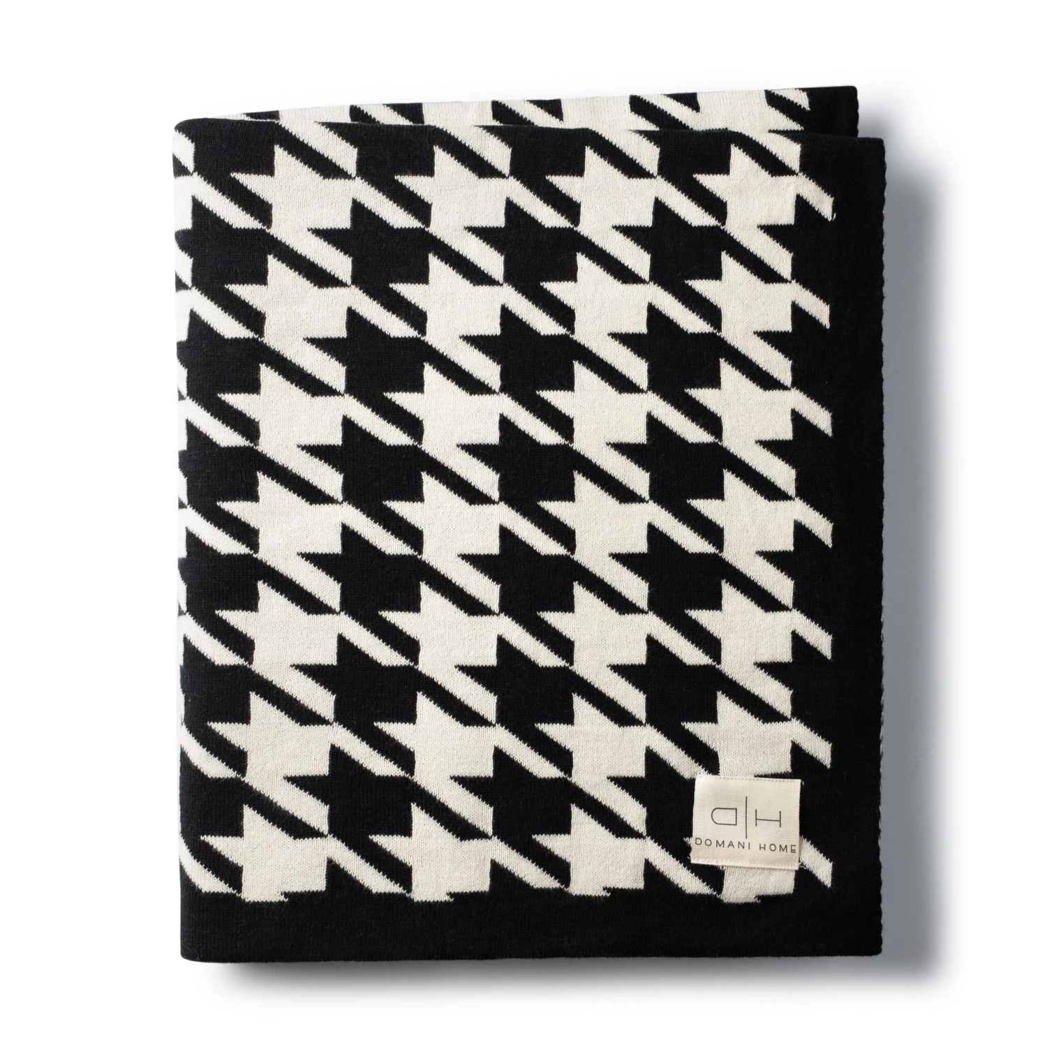 A classic houndstooth pattern this black and white throw is perfect to accentuate your couch or your bed. Drape it over your couch or wrap yourself in it and enjoy the warmth of this beautiful throw.