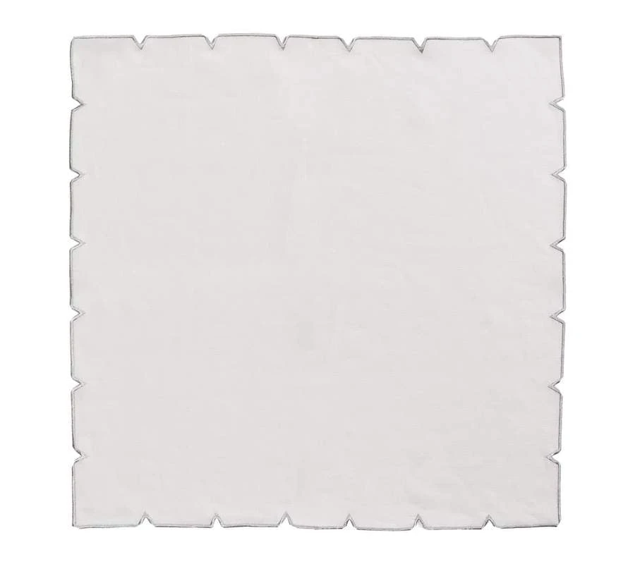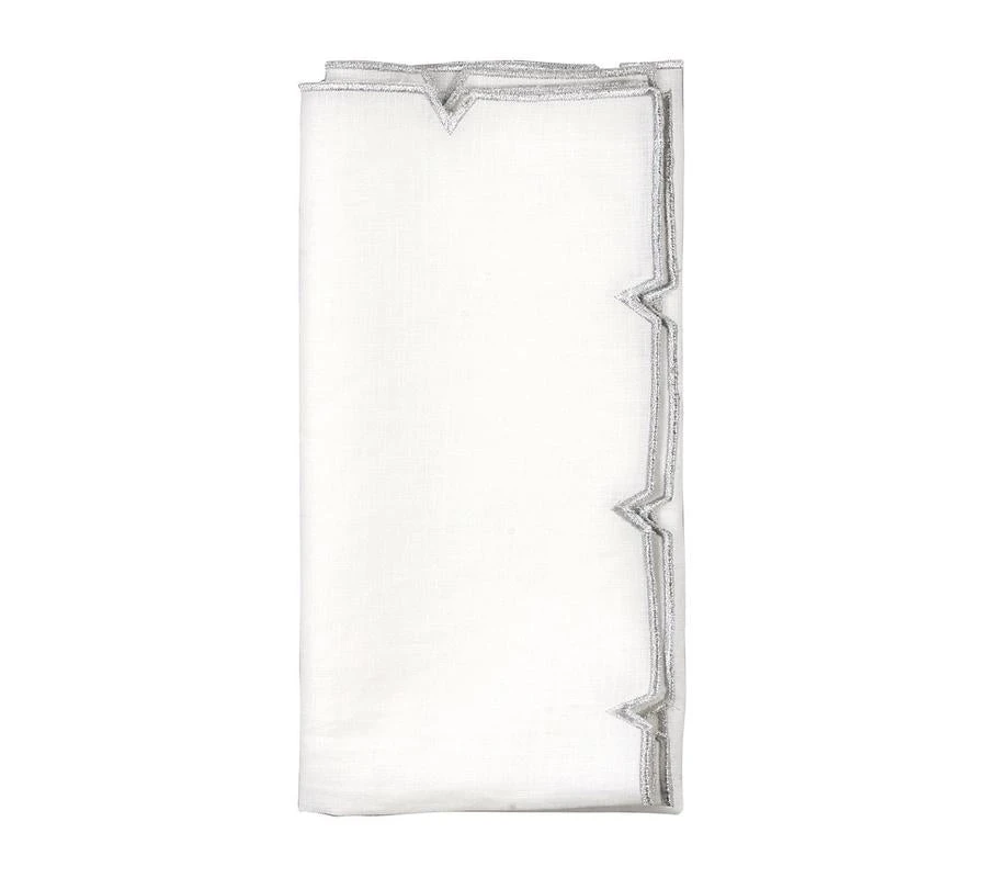 The simplicity of the beautiful linen Divot Napkin gets a twist with the use silver divot edging. These crisp white linen napkins radiate class and will elevate any table setting.