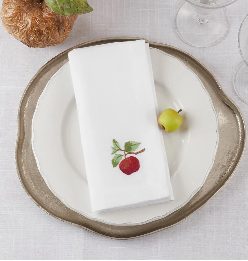 Transform your table from simple to chic with this lovely set of Embroidered Apple Design Table Napkins.