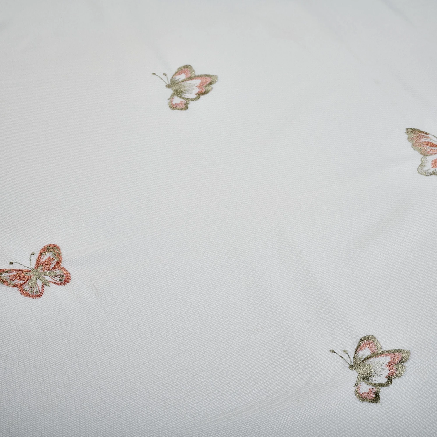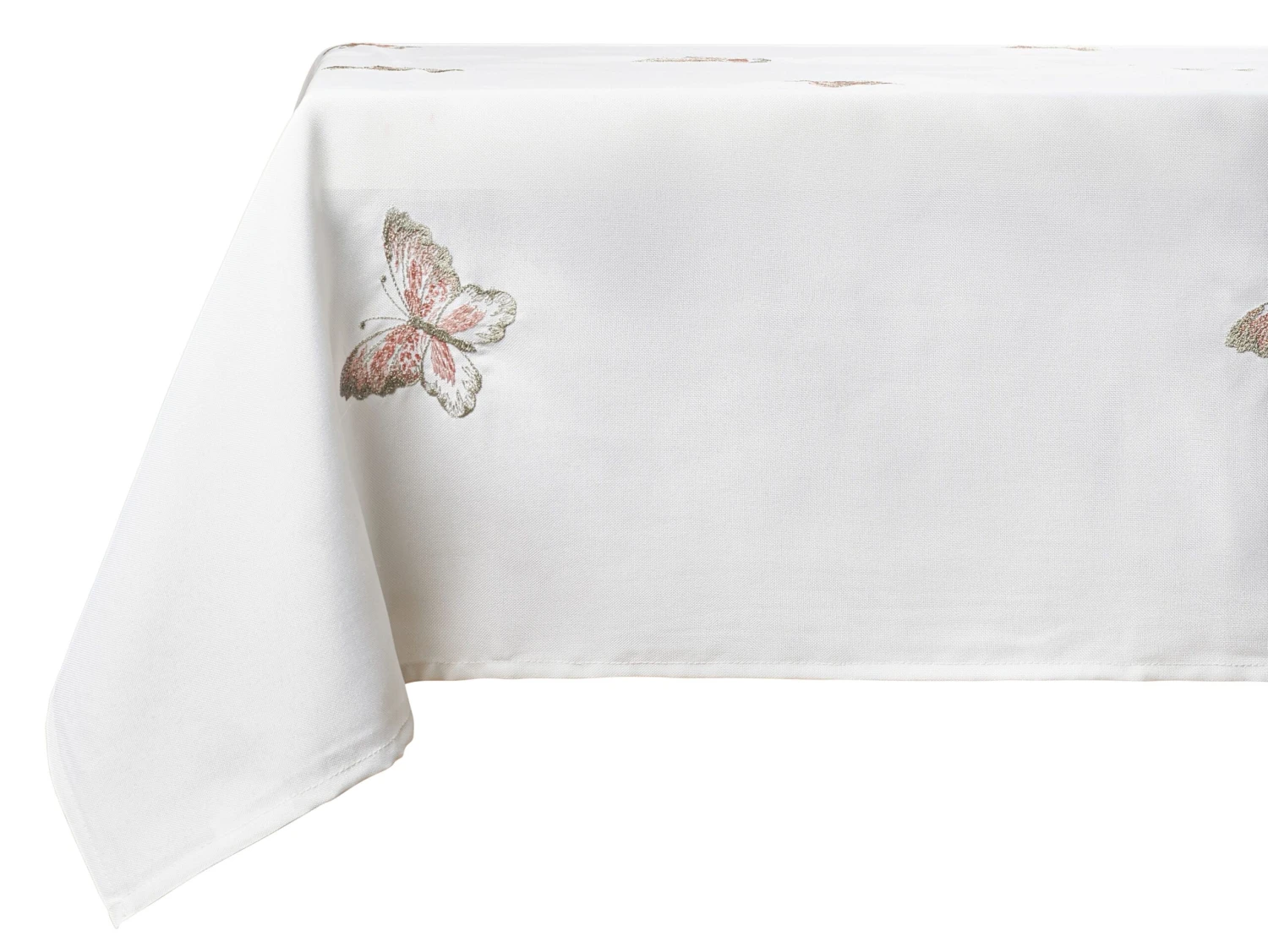Trendy butterfly tablecloth with delicate embroidered butterflies in mixed metallic thread. Placed perfectly for an artful presentation.