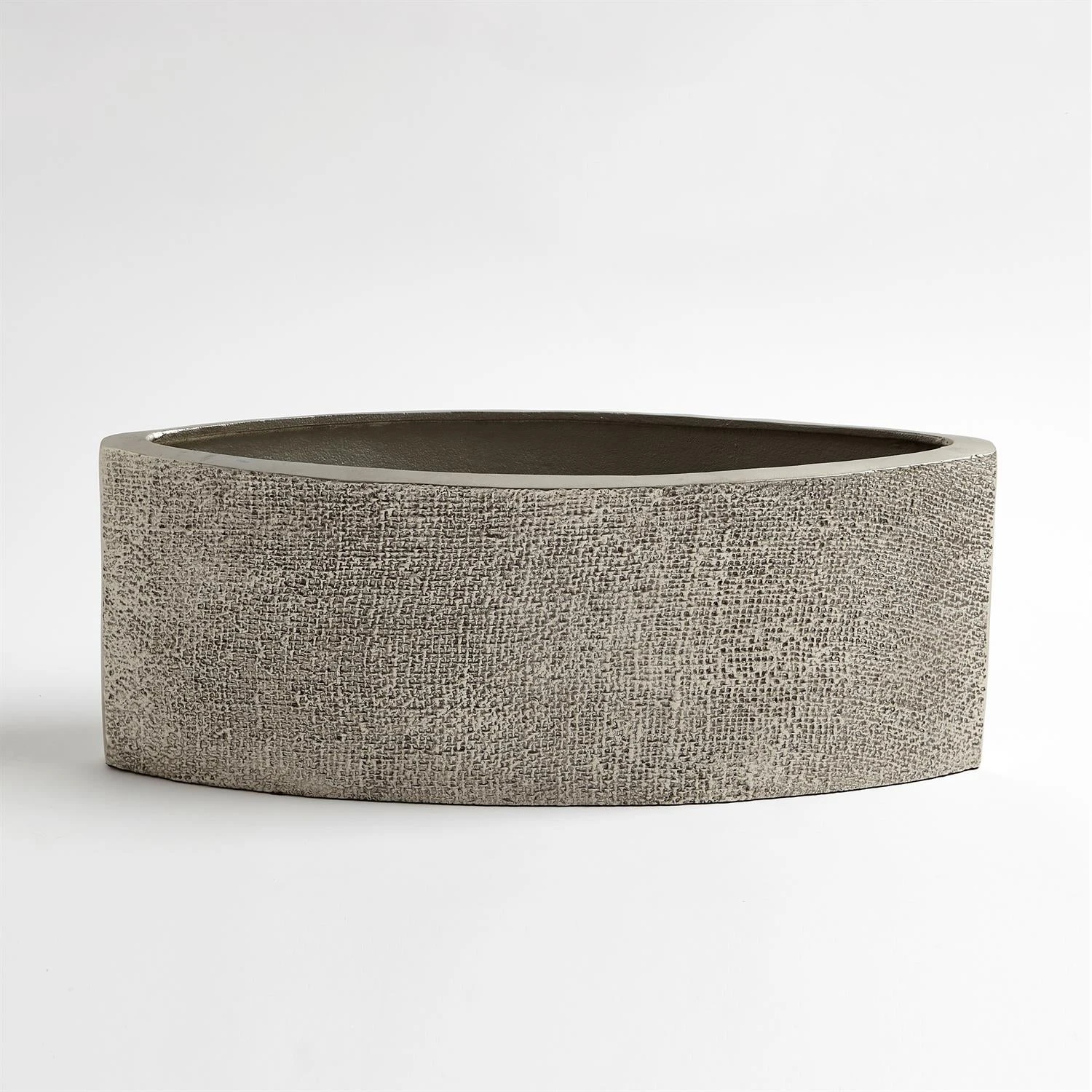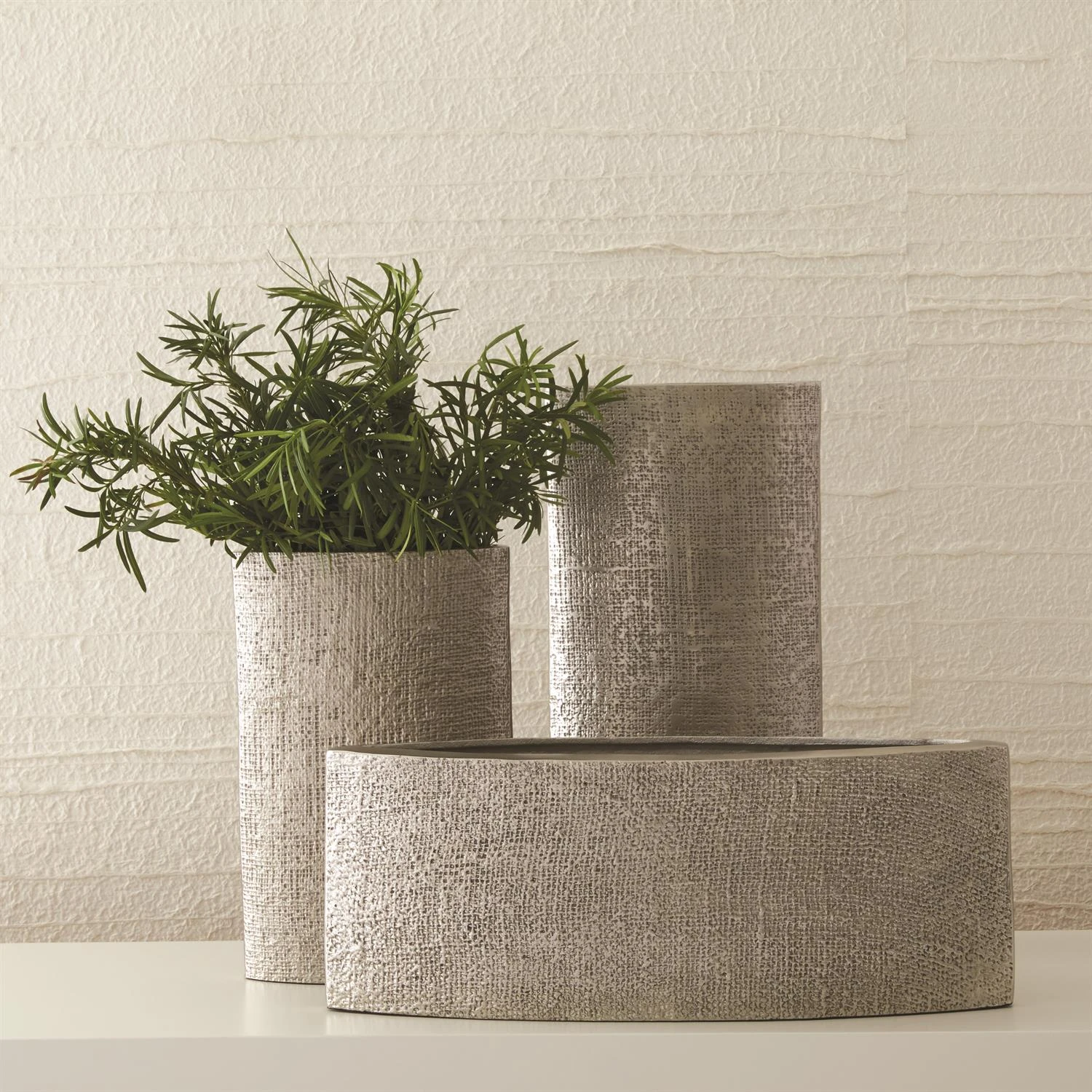 The organic, textured watertight vases is hand-etched into an aluminum sheet, forming the body of the brass finished vases.