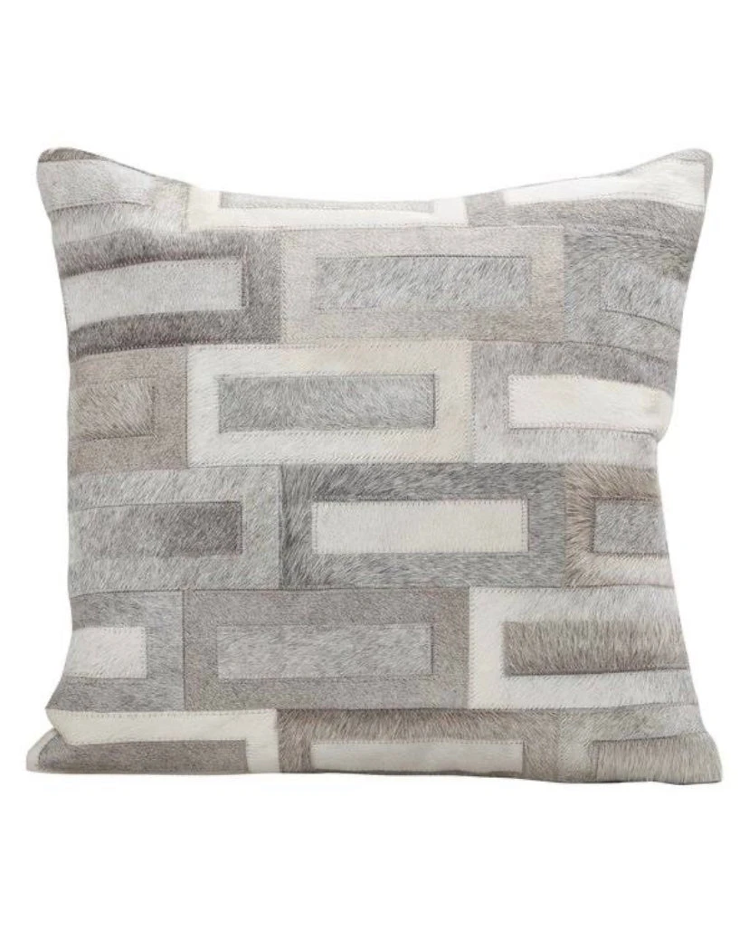Fibre by Auskin decorative cowhide pillow stitched with contrasting sections help create a beautiful illumination. Auskin’s Cowhide pillow collection includes many different styles and color. All Pillows use a fabric backing and a removable polyester insert. The pillow has a full length zipper for easy removal.