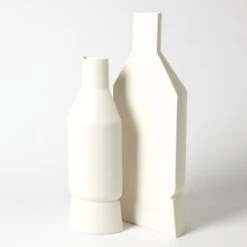 Unique in design, our Flat Back Collection of vases take up very little footprint unless you take two and put them back to back to recreate a complete piece. The black crust and matte white glazes can be paired together to form truly unique accessories. Made of Portuguese ceramic.