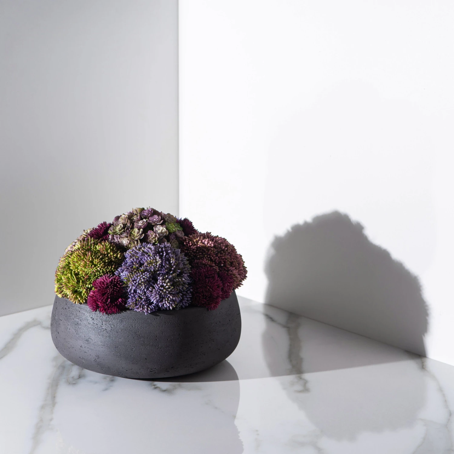 Add color and texture to your abode with this floral planter. Perfect for dining areas, mantels, consoles, and more, it showcases colored tufts of flowers inside a black planter.