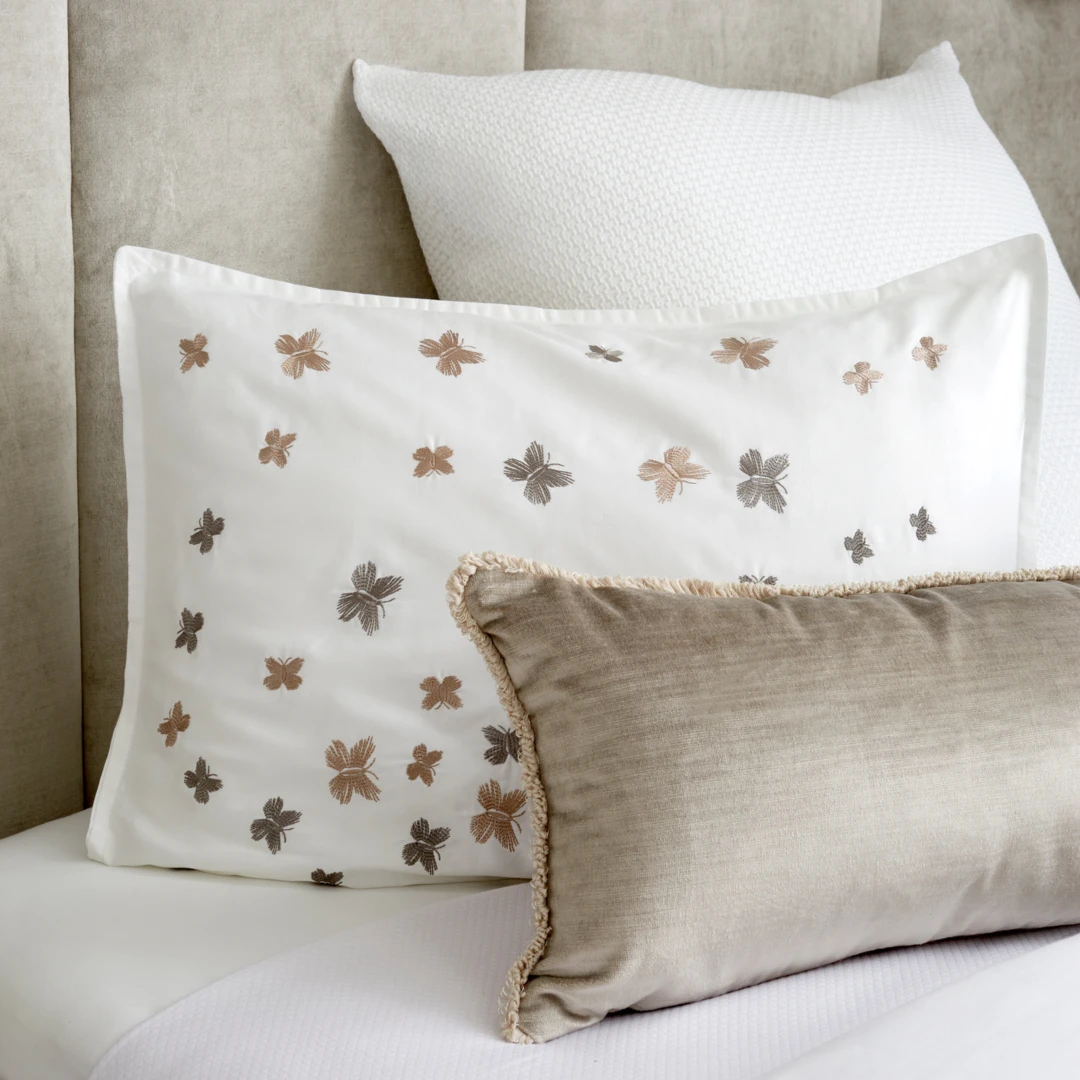 An elegant cascade of embroidered butterflies are the standout decorative element of this stunning pillow. Made from 100% cotton sateen making it super soft and luxurious.