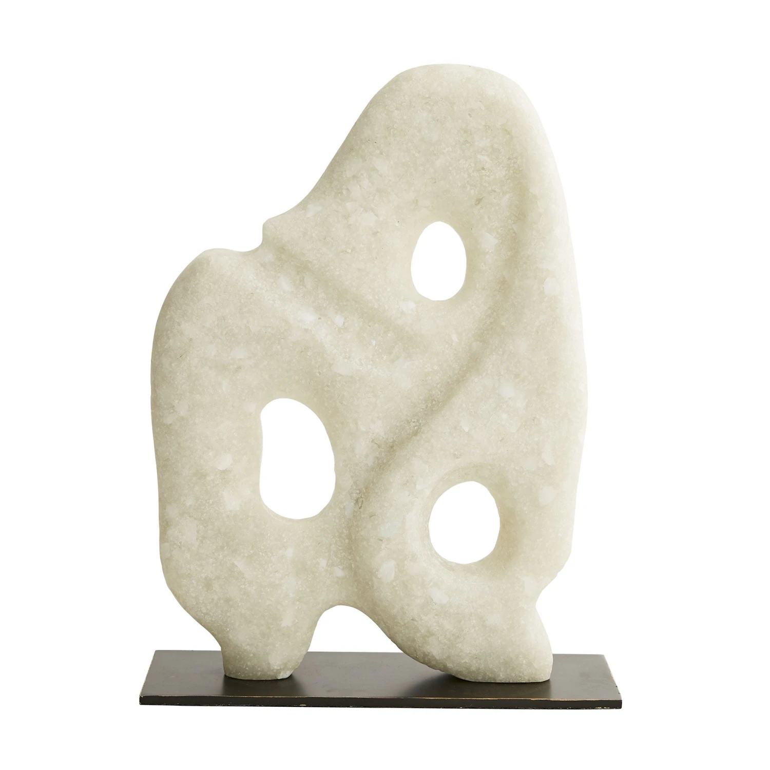Explore the expressive nature of sculptural art with the Greta Sculpture from Arteriors Home. Crafted of white glass stone, this shapely structure features a silhouette to be defined by the beholder. The unique composition creates a variation of texture within the material, as well as reflective quality that adds a touch of shimmer.