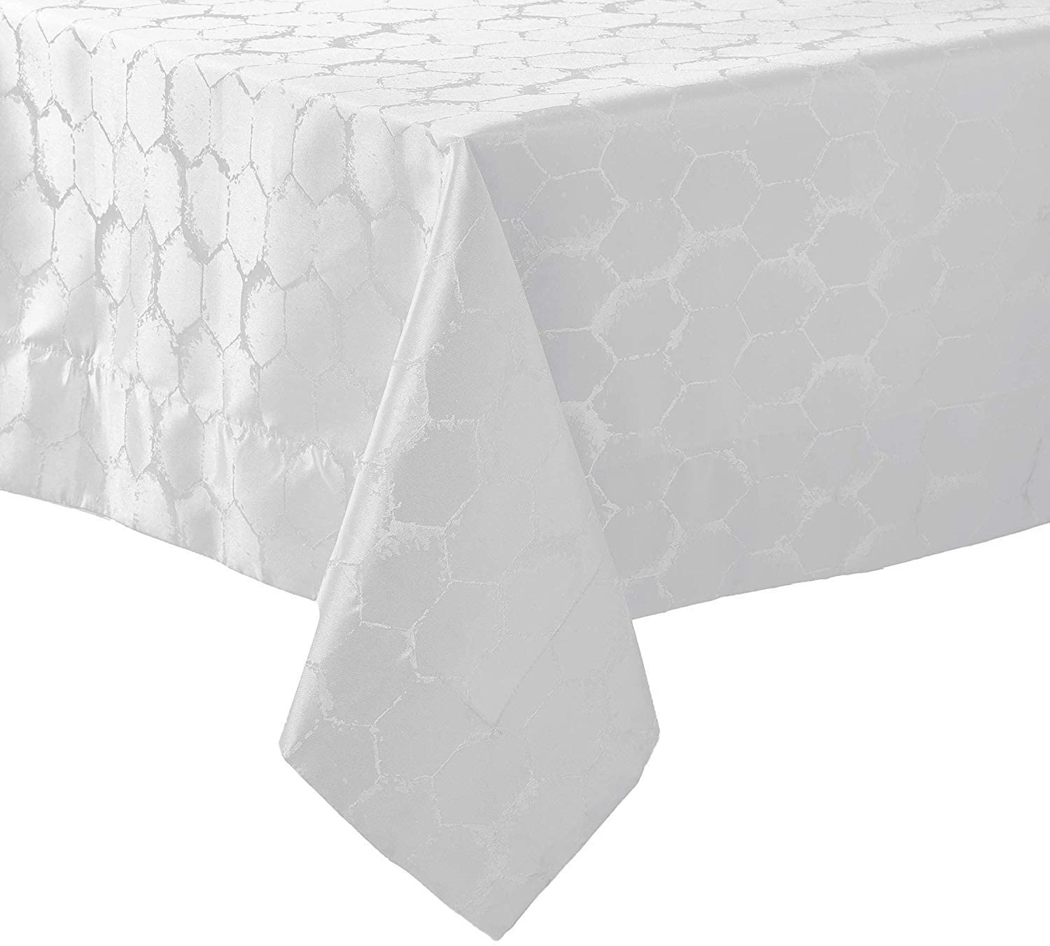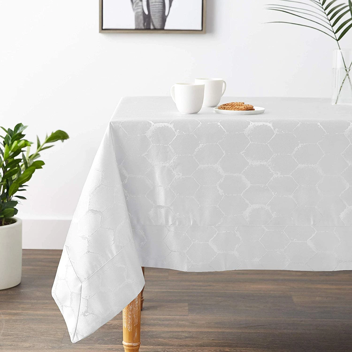 Update your home with this attractive premium white honeycomb polyester jacquard design tablecloth.