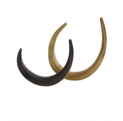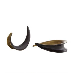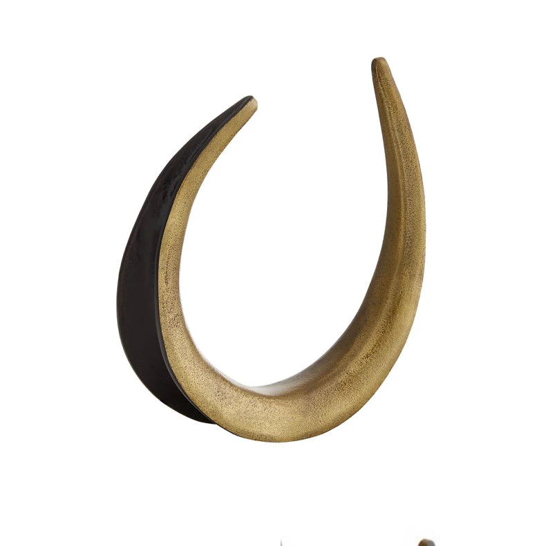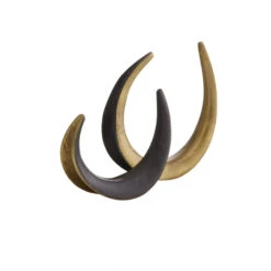 These crescent sculptures each feature alternating tones of antique brass and bronze. Makes for a stunning set of art decor.