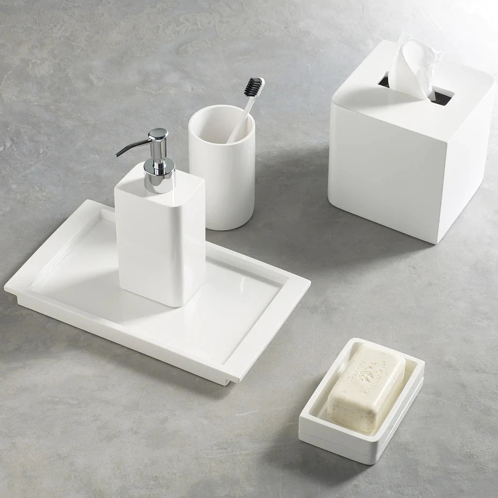 Minimalist design is perfected in our sleek white Lacca bath accessories. Made from lacquer.