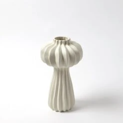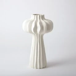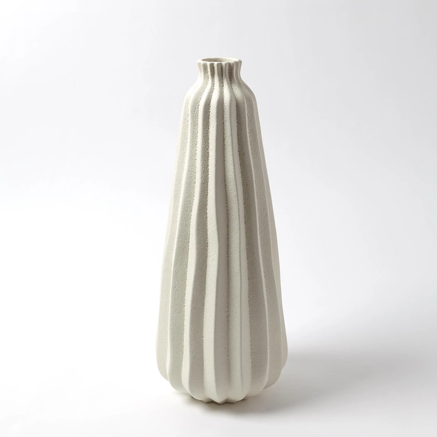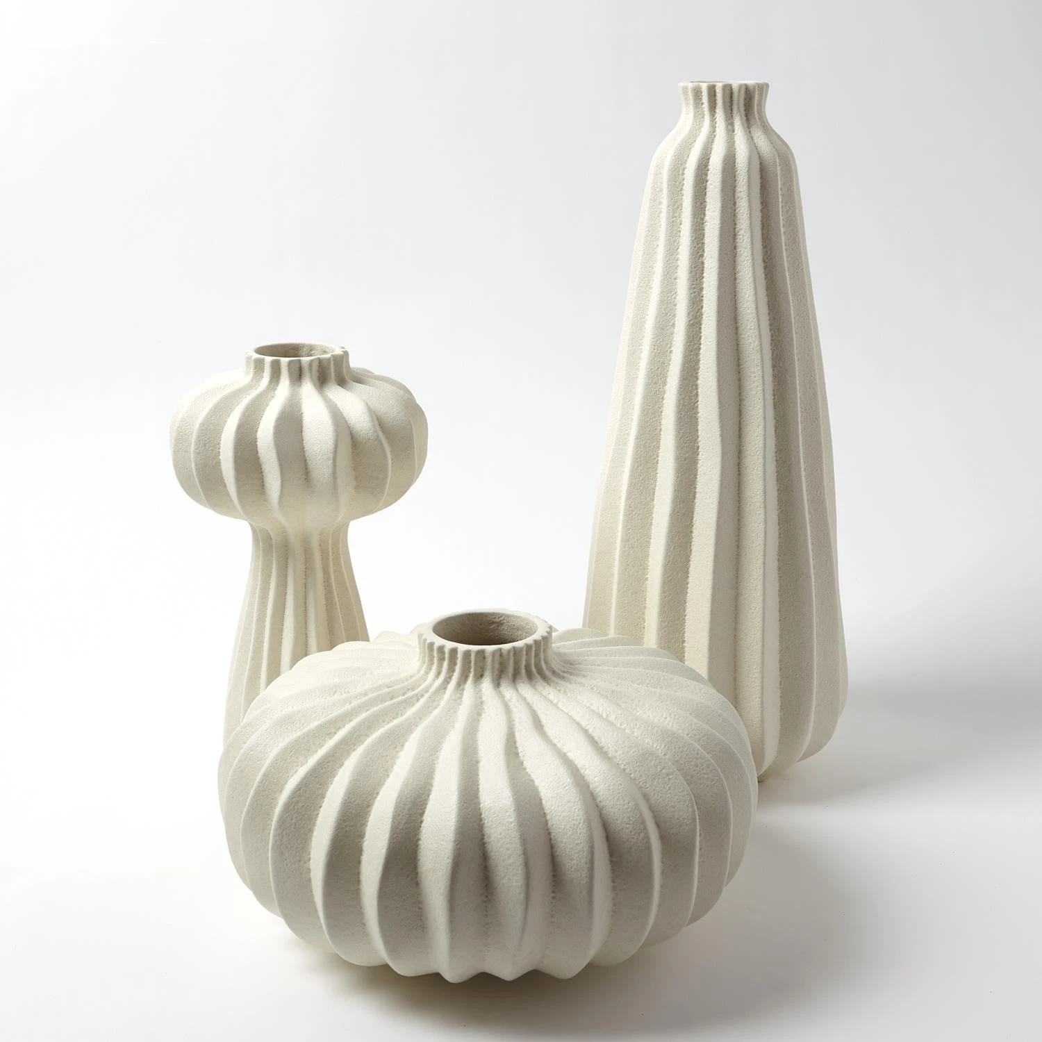 Light-catching crisp, irregular ridges accentuate the three organic shapes of the Lithos collection. The original pieces used for making the molds were hand-crafted by Portuguese artisans.