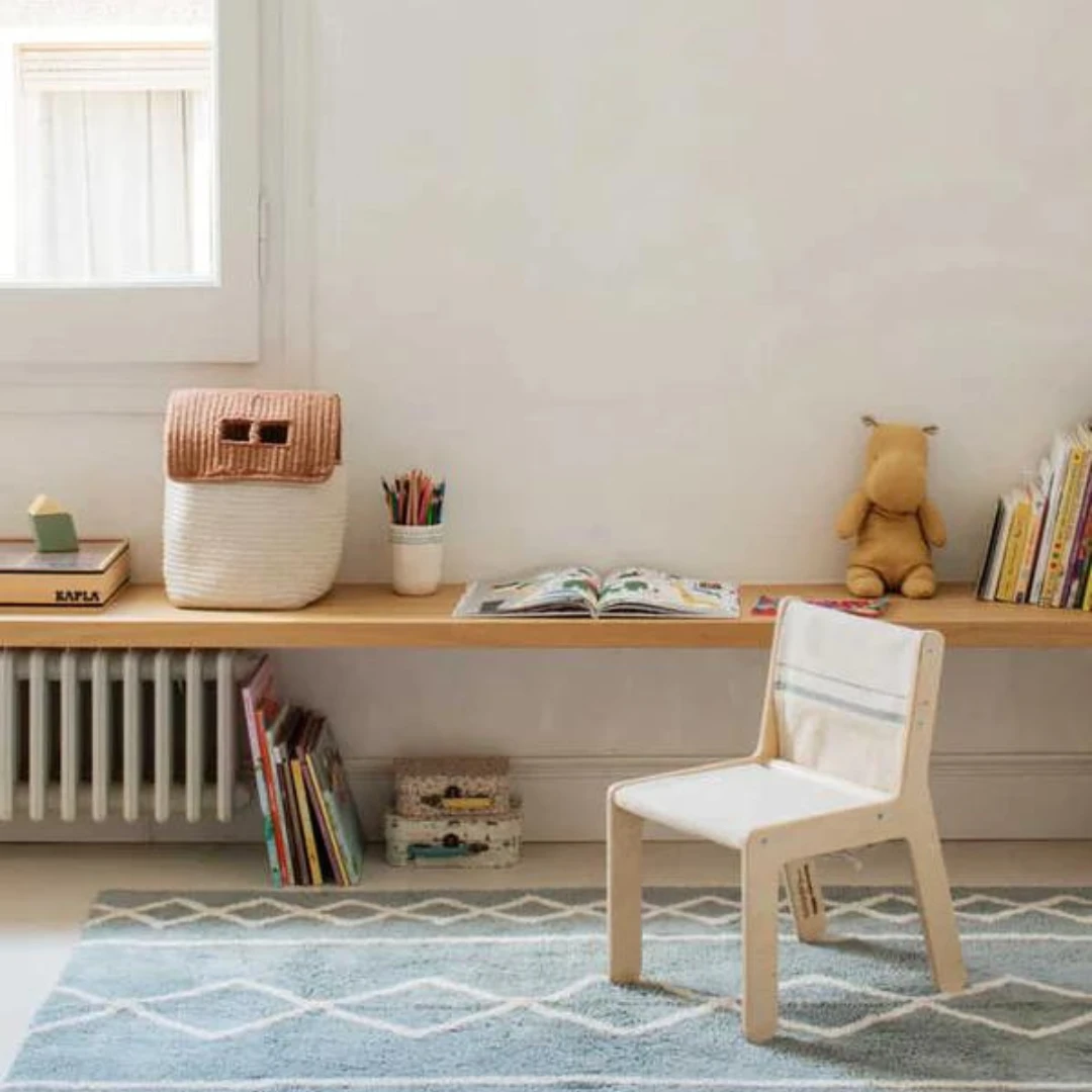 Finish off the kids’ room decor with a practical house-shaped storage basket for little ones to keep their toys and many treasures. Each basket is handcrafted using extra-thick, braided cotton cords featuring a square base in color Natural, a sewn-on rooftop in the shade of Toffee, and cute cutout windows on the surface.