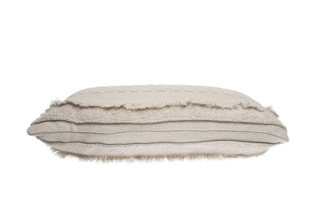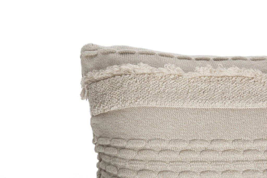 This cushion is the perfect accent pillow … Cotton cushion knitted in tricot with fringes and different textures.