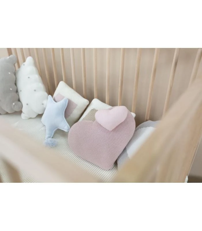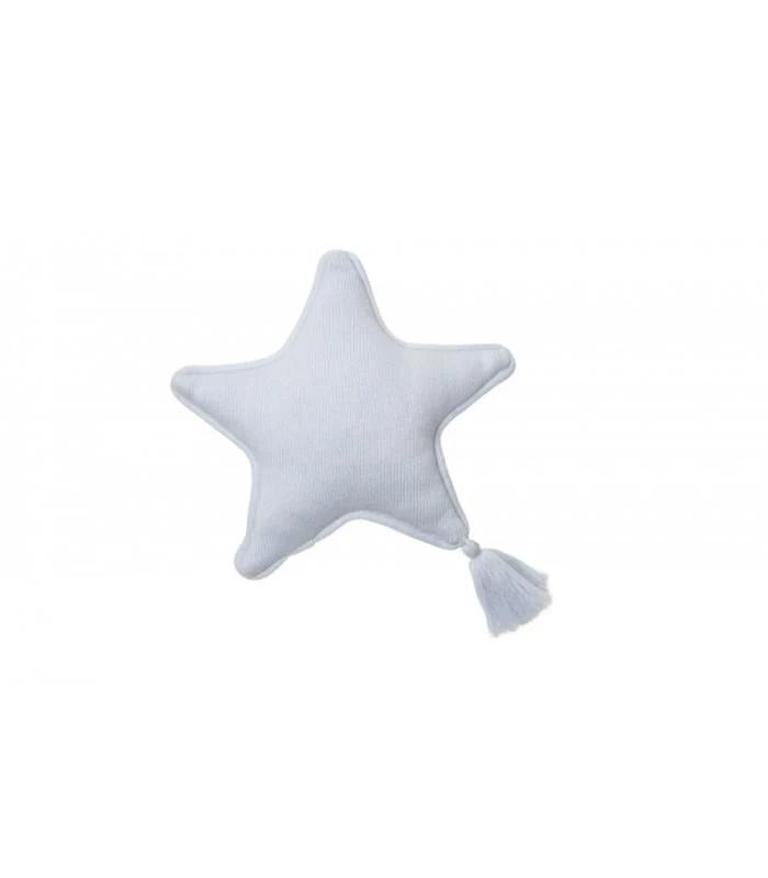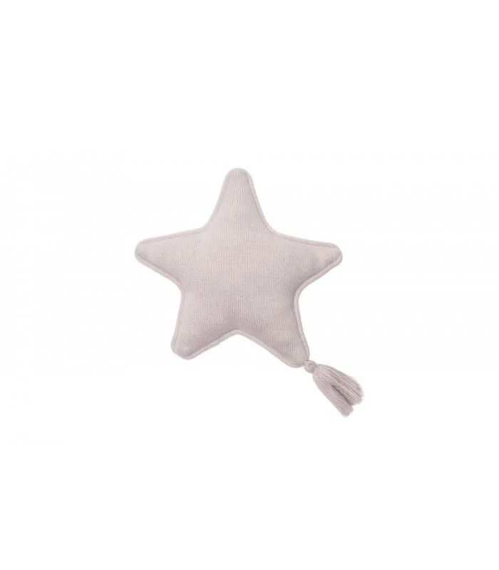 Soft knitted cushion shaped like a star. It has a tassel stitched at one tip of the star. The cutest accessory for any playroom, becoming the perfect cuddly toy for a child. You can wash it directly in your washing machine, without taking out the filler!