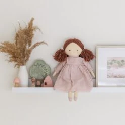 Matilda is an adorable doll with gorgeous red hair and an on trend pink linen frock.