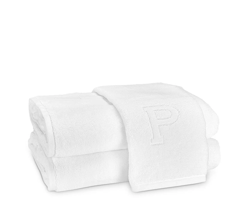 Auberge offers a simple yet striking alternative to monogramming, carefully crafting an uppercase letter in bold relief on soft, long-staple cotton terry towels. The collection completes a welcoming guest bath in style or makes a thoughtful gift for a new home.