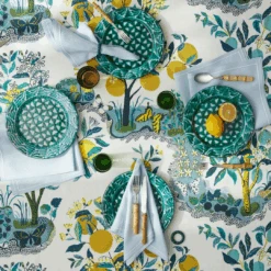 A colorful base and white finishing details make for an exceptional addition to your tabletop collection.