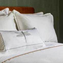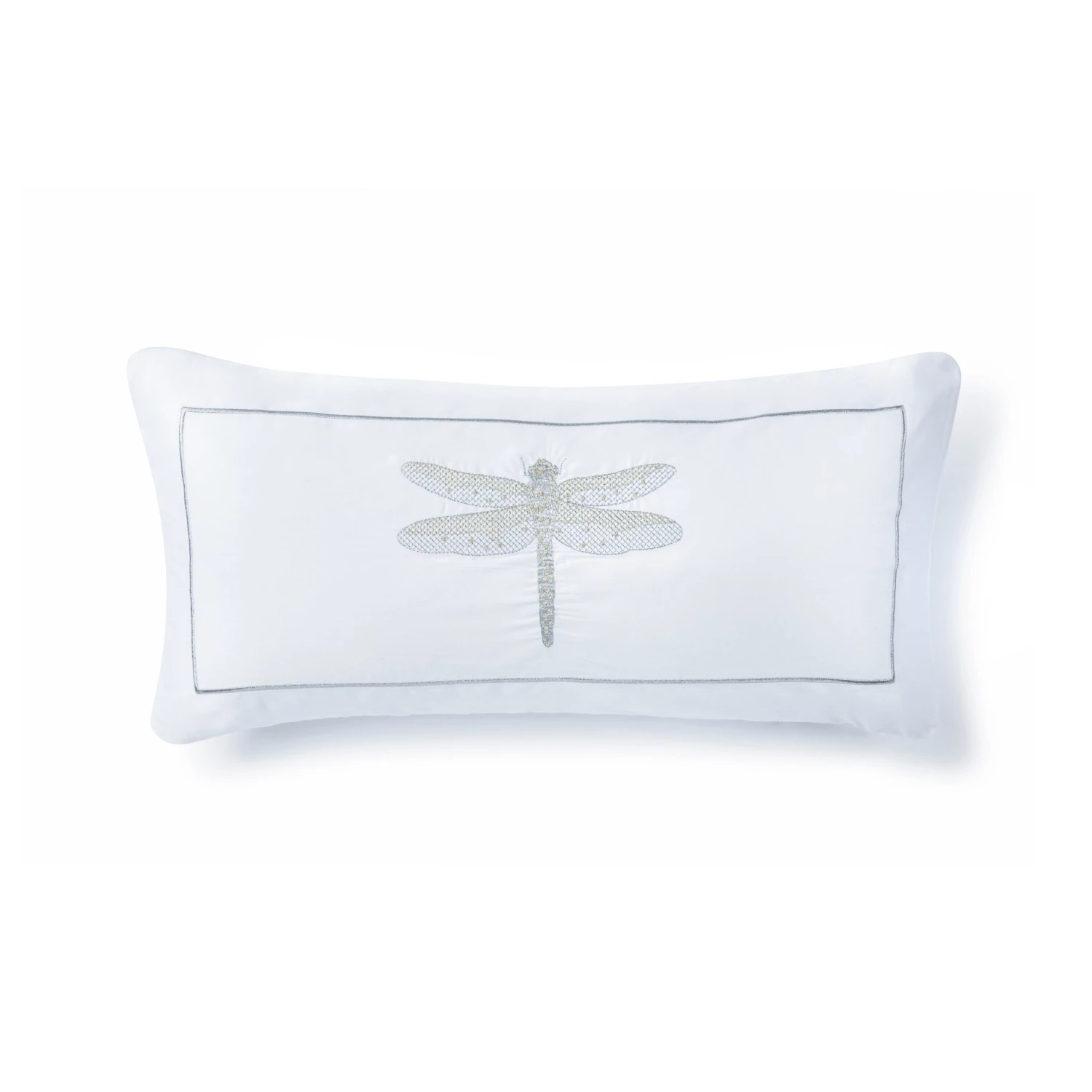Embroidered with an elegant gold & silver dragonfly. Makes a wonderful statement in any room.