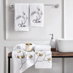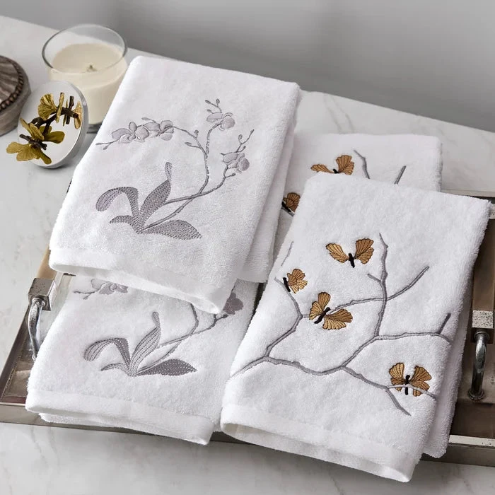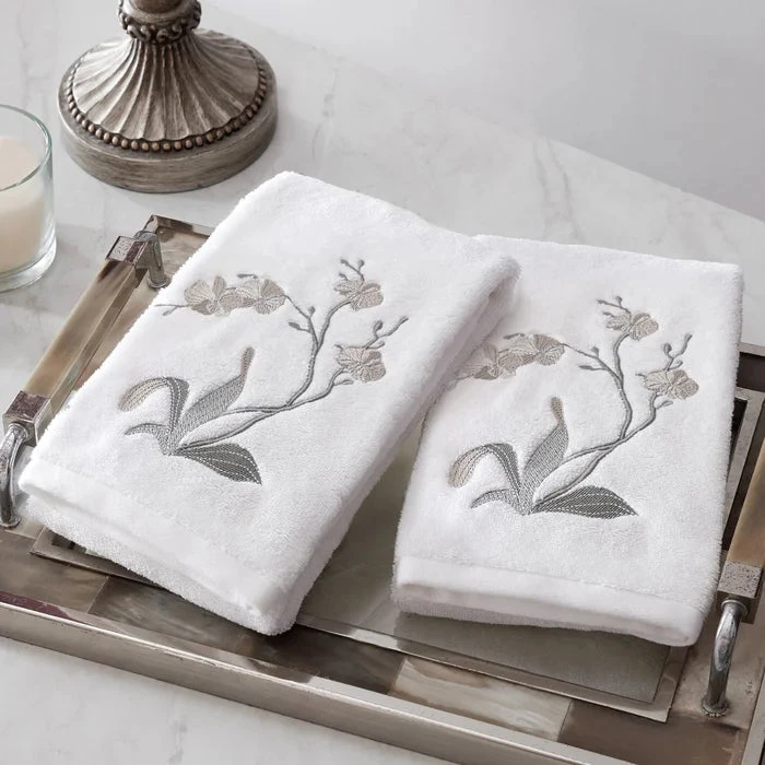 Set of 2 Michael Aram orchid leaf hand towels. Made of cotton provides super absorbency and plush texture.