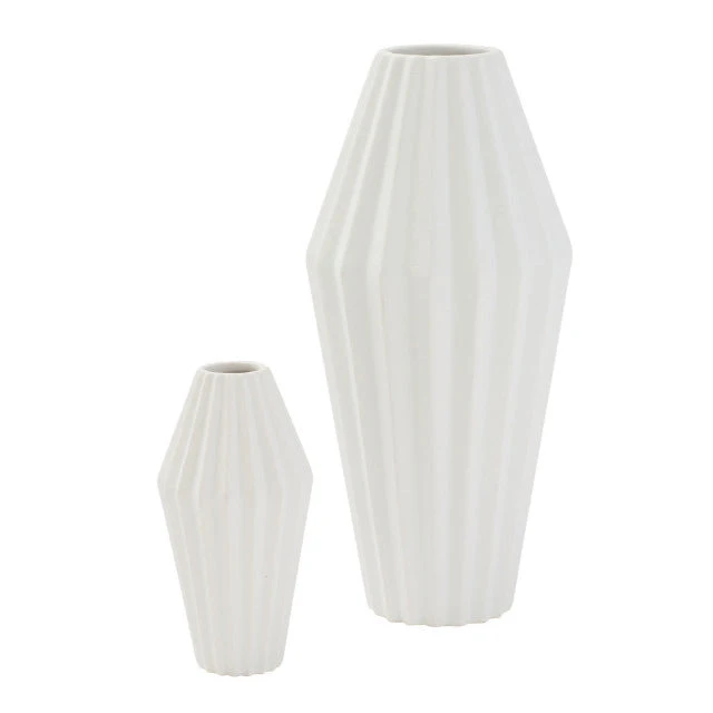 With a diamond silhouette and ribbed textured surface, this ceramic vase brings chic style to any home, no matter the finish.