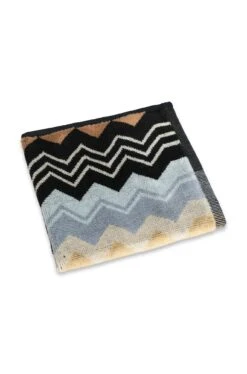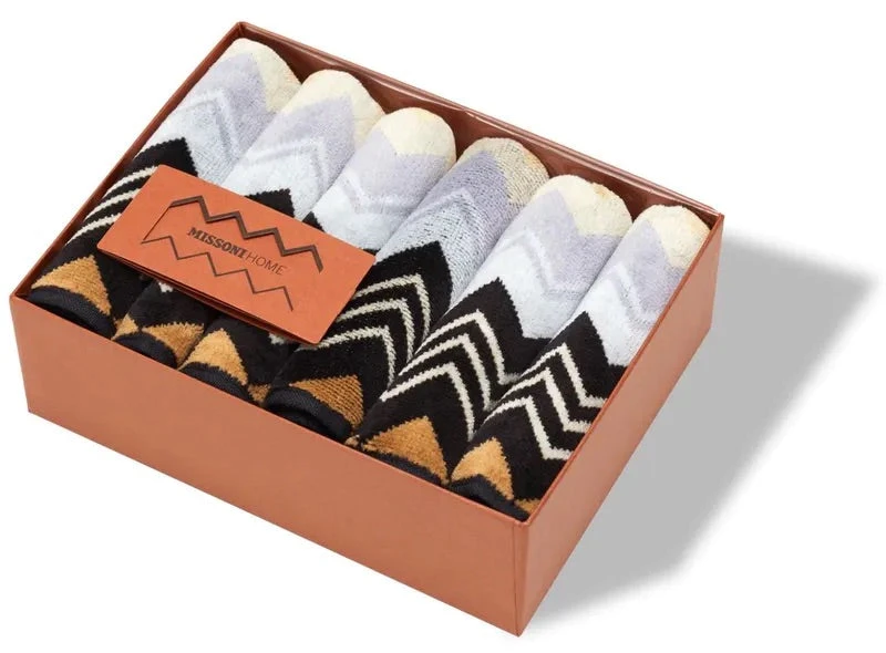 Set of six Missoni Home face towels in cotton terry velour with multicolor zigzag motif.