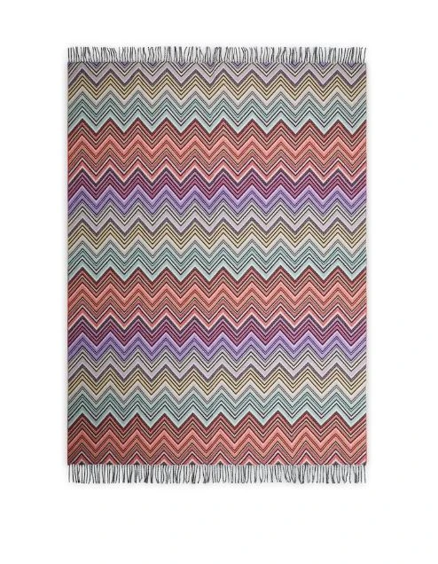 Wool and cashmere throw in the iconic and graphic multicolor chevron pattern.
