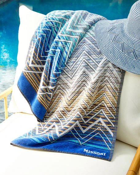 Introduce a variety of blue tones to the home with this Tolomeo 170 towel from Missoni. Features an array of intersecting striped and zigzagged lines resulting in an eye-catching finish.