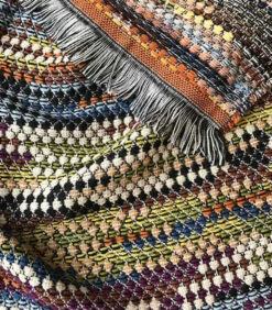 This Missoni Home Venere Throw features a gorgeous multi color palette. Pure wool jacquard blanket with a knobbly effect within its loosely woven threads. It instantly adds style to any room it’s placed in.