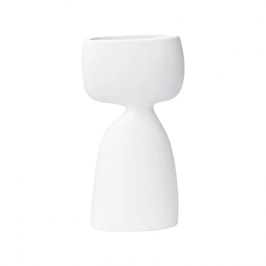Inspired by abstract art, with a white glazed finish and narrow mouth complete the look.
