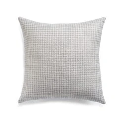 Houndstooth like tweed pillow with hues of grays, taupes, and blues.