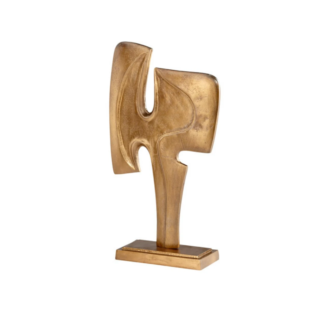 The Nimrud sculpture is made up of a gilded negative and positive organic shapes. This abstract sculpture is sturdily mounted on a wide gilded base. This sculpture will undoubtedly liven any interior space.