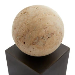 Bold and refined, the Oscar Sculpture offers a unique combination of materials. A textured chai travertine ball adds an organic element to the piece, while the bronzed steel block base makes it a uniquely modern work of art. Travertine will vary.