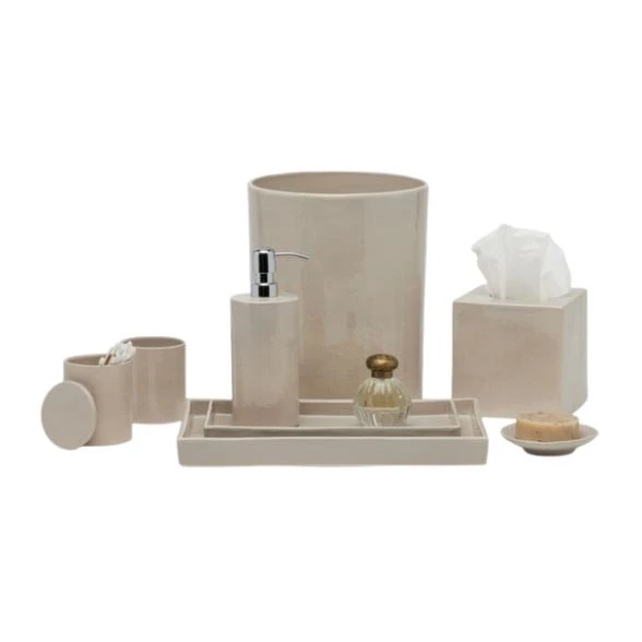 The Cordoba Bath Accessory Collection adds a contemporary touch to your bathroom with its ceramic construction featuring a burlap texture.