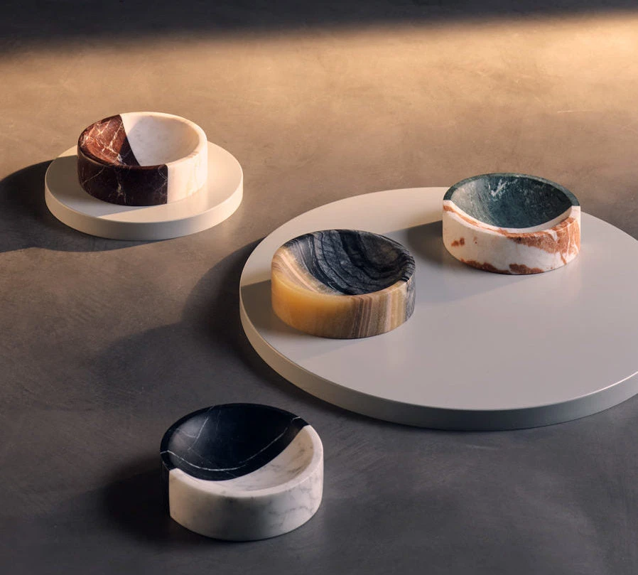 With modern structural elements, this unique Greg Natale bowl takes study in form and overlays it with the beauty of contrasting marbles.