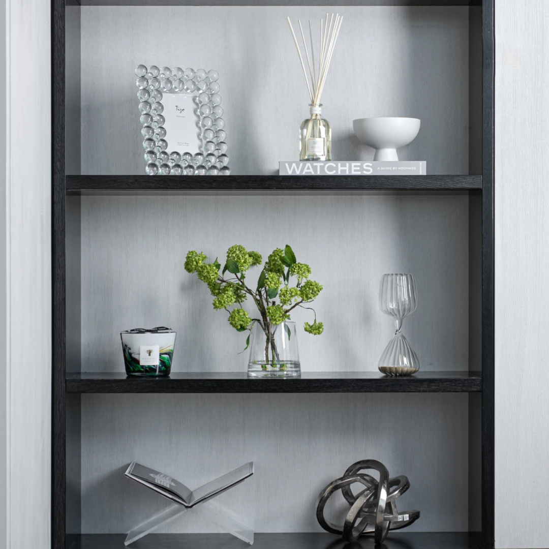 Decorative floral accent arrangement in glass vase. The perfect accent to your console, nightstand or bathroom.