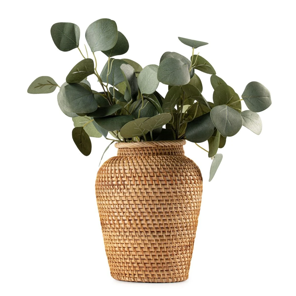 Bring nature into your home with our Rattan Eucalyptus Vase! This unique piece is crafted with natural rattan and detailed with blossoming eucalyptus for a beautiful, vibrant look.