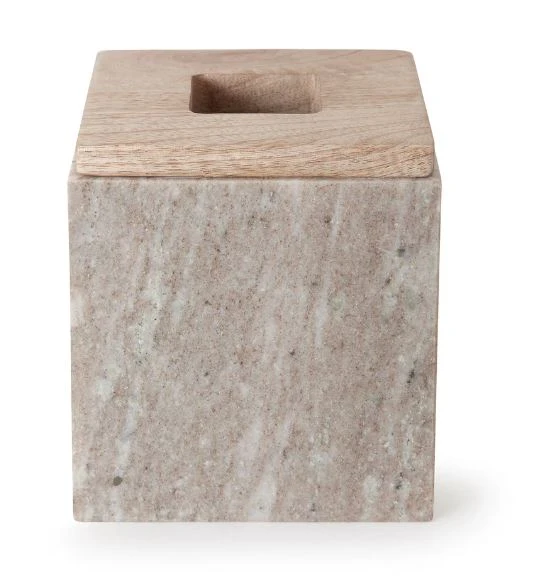 Crafted from natural marble and featuring mango wood accents, this beige-toned collection adds a modern-meets-earthly delights appeal to any spa.