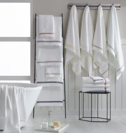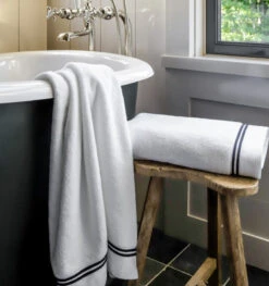 The Aura is a sumptuous combed cotton terry towel collection that wraps you in softness. The embroidered striped border adds a touch of design to your bath.