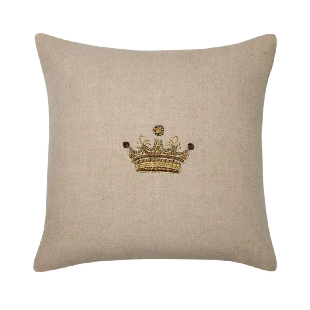 The meticulously hand-embroidered, shimmering crown motif of Regale highlights the grandeur of home with a hint of lightheartedness.